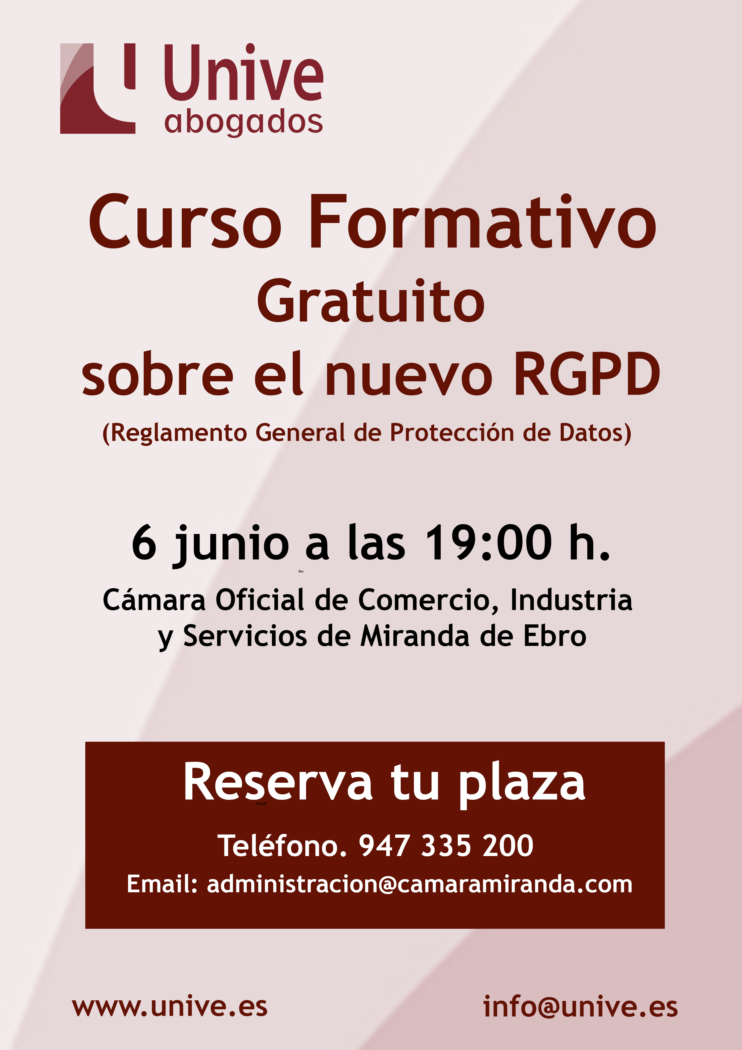 De conformidad con el Nuevo Reglamento Europeo de Protección de Datos, se informa al usuario de los siguientes aspectos: