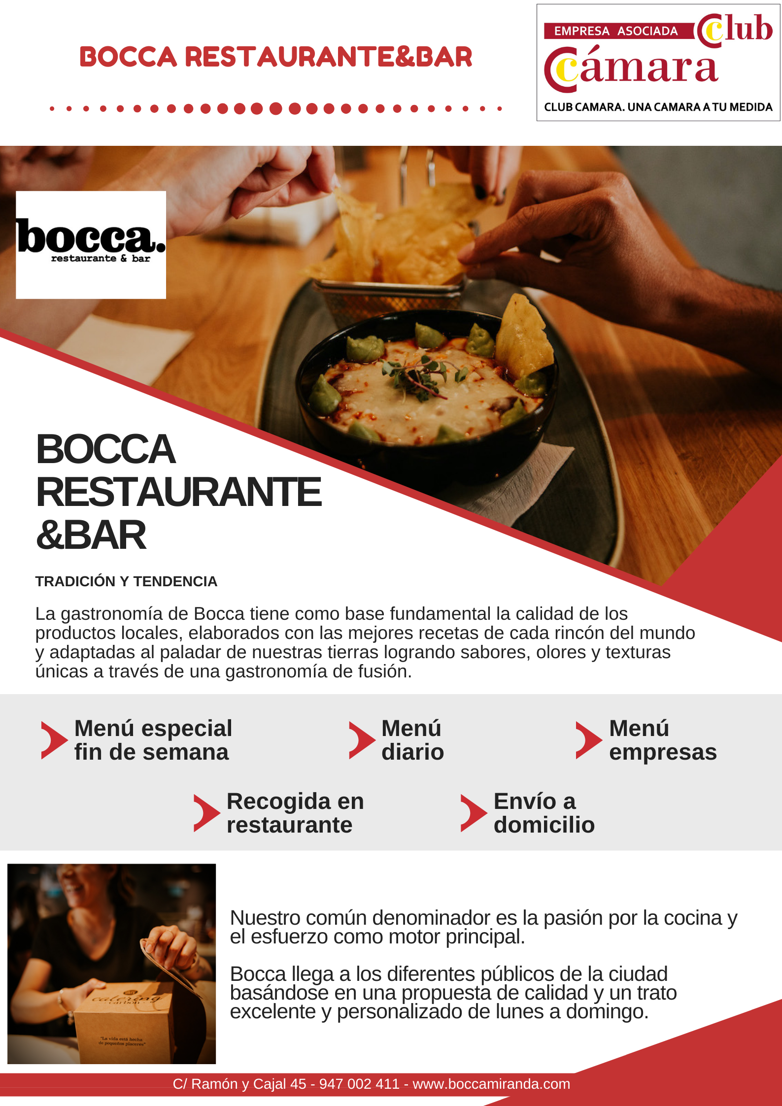 • Descripción: Desde el 2010 Bocca es un espacio de referencia para los mirandeses y visitantes. Un punto de encuentro para la restauración, el arte y el ocio.
