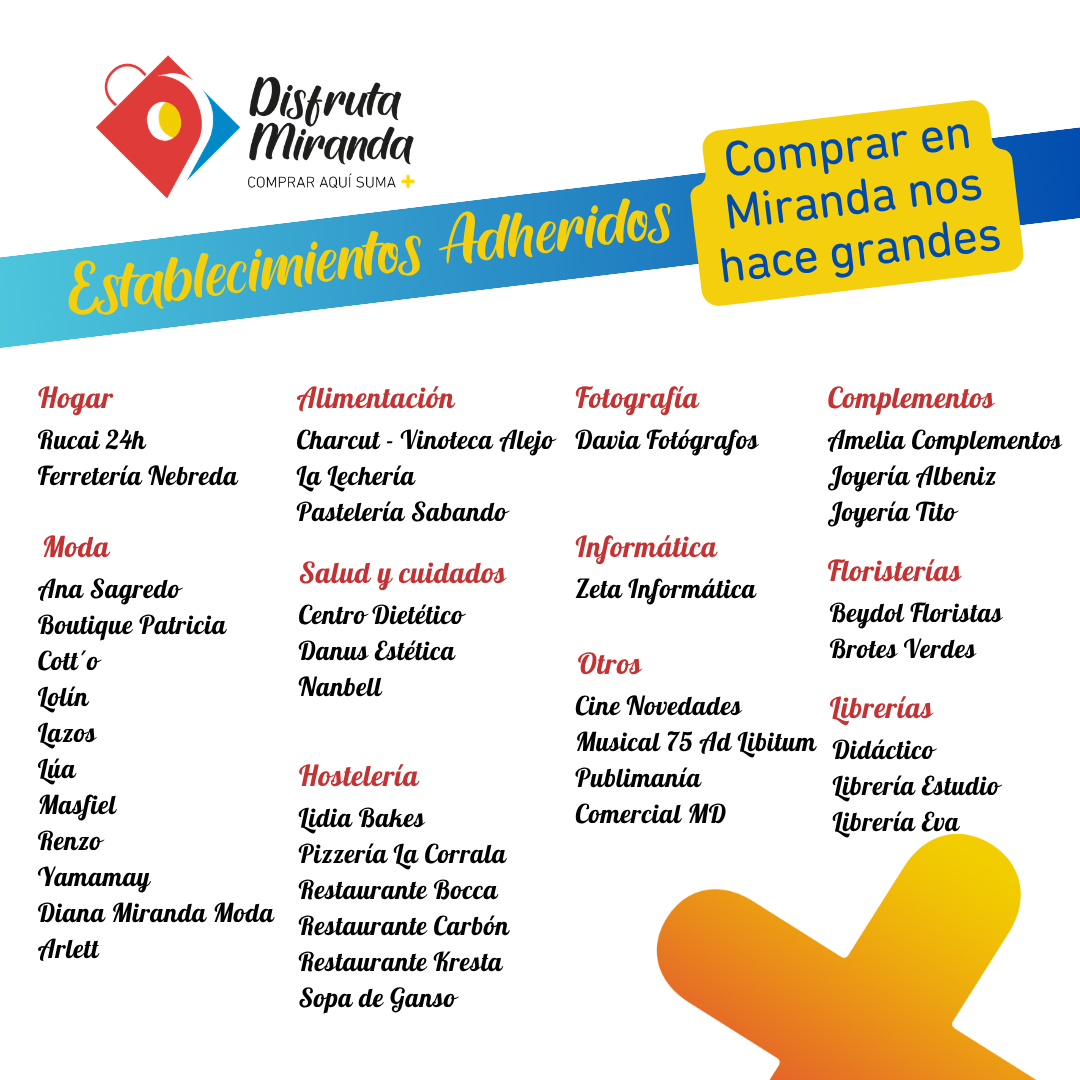 Tenemos el placer de anunciar la distribución de 10.000€ en vales virtuales canjeables en los establecimientos que forman parte de Disfruta Miranda y que incluyen comercios, locales de hostelería y servicios.