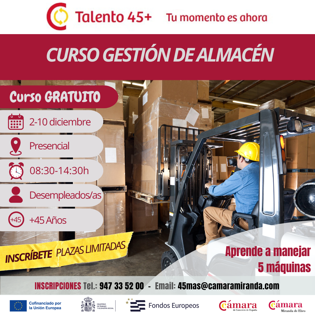 CURSO GESTIÓN ALMACÉN (30h). DESEMPLEADOS 45+
