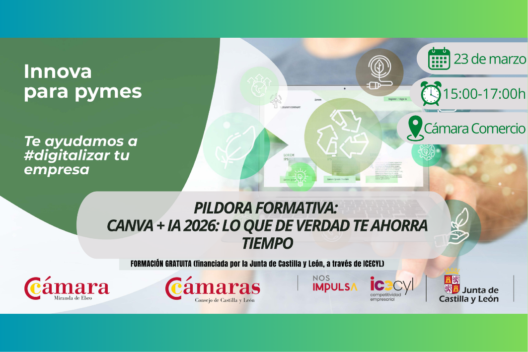 🏢 Lugar de celebración: Cámara Comercio Miranda de Ebro. Pol. Ind. Bayas, C/ Guadalquivir, 6. Inscripción obligatoria